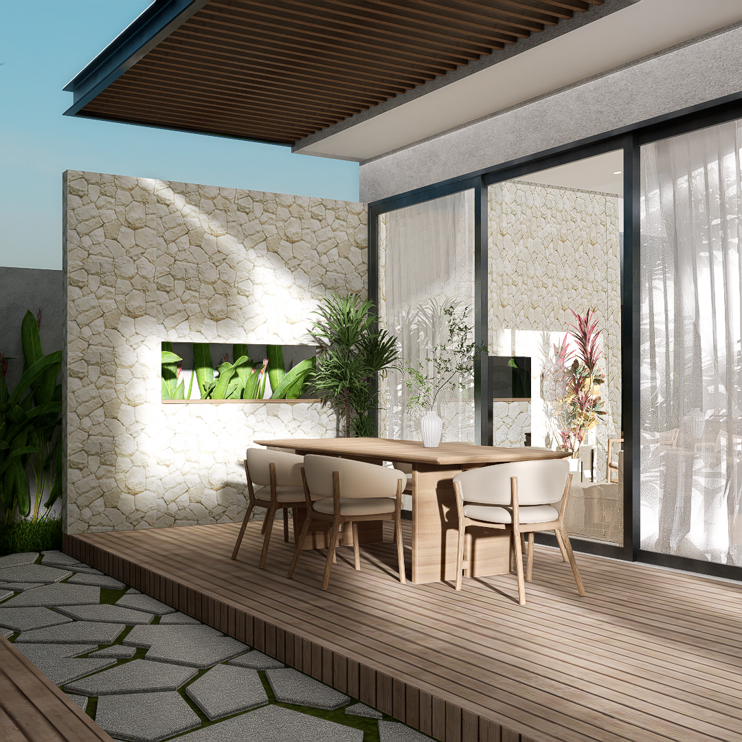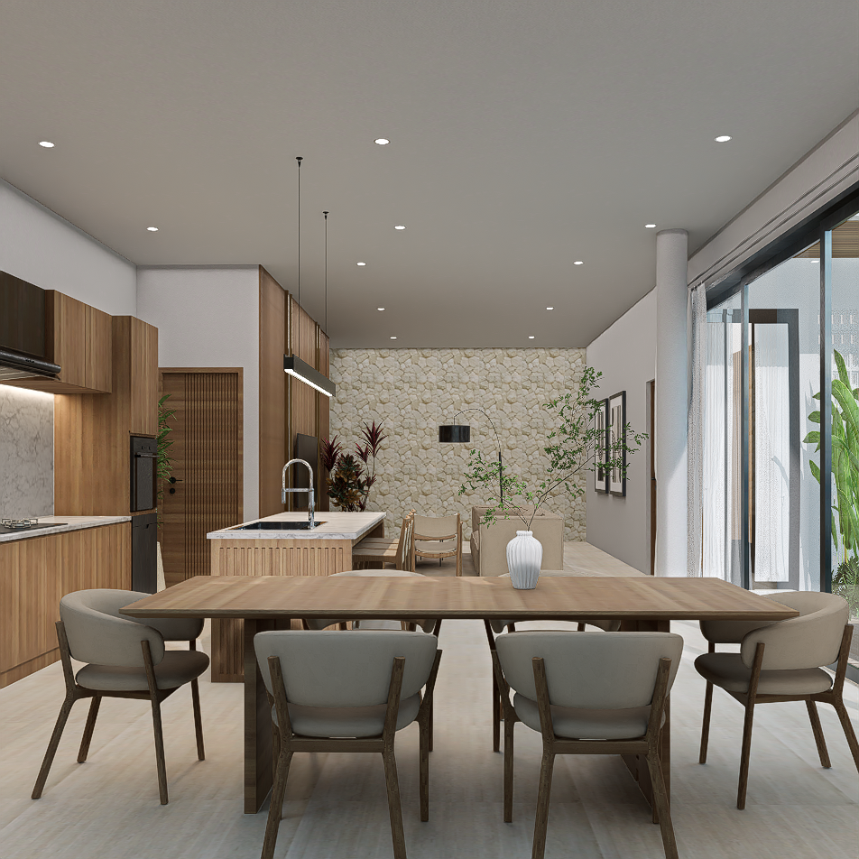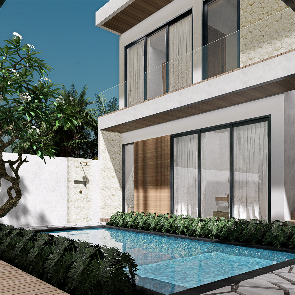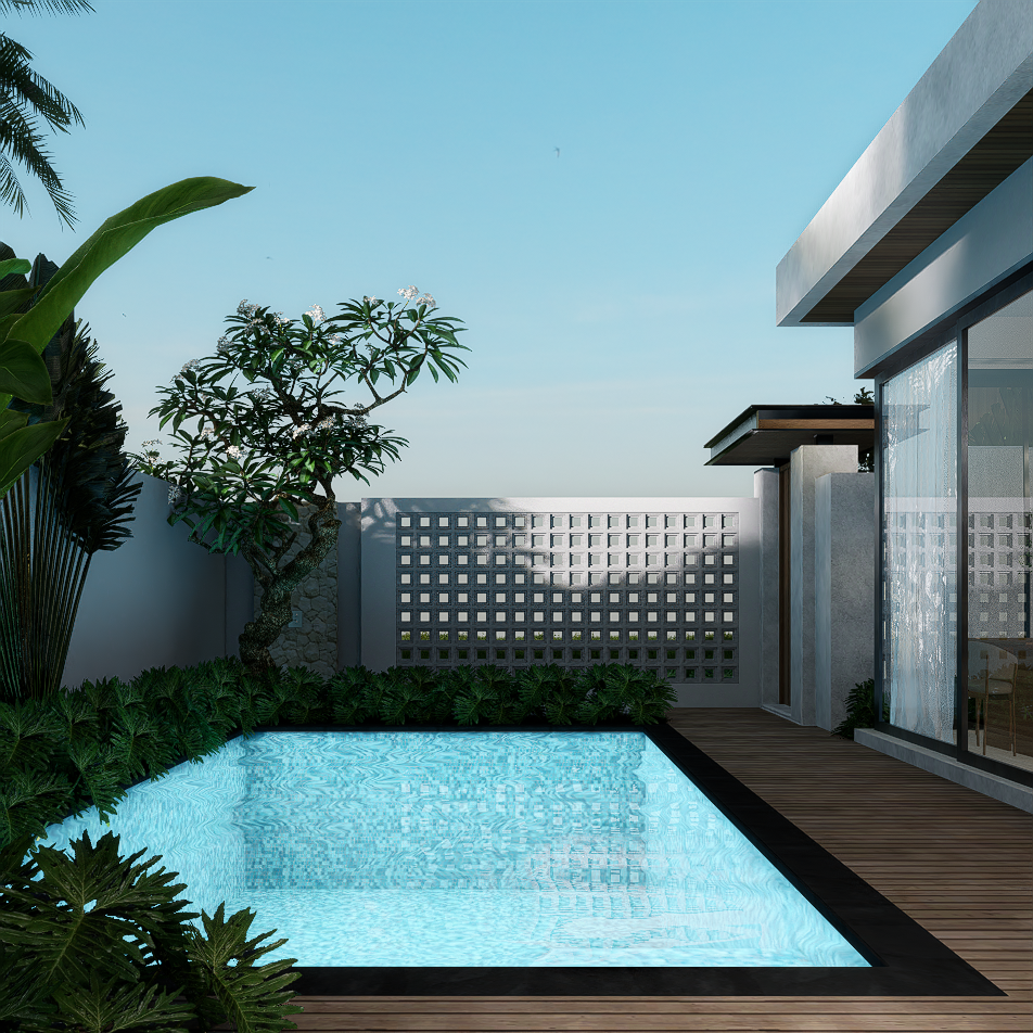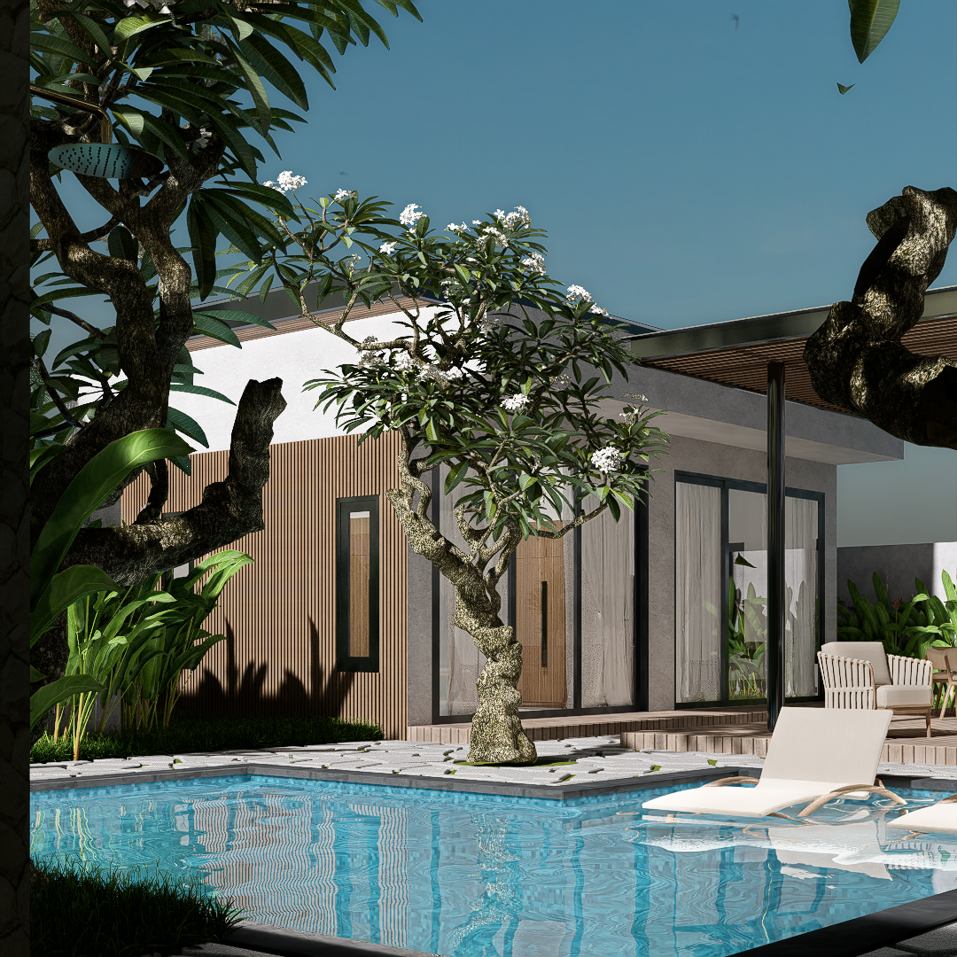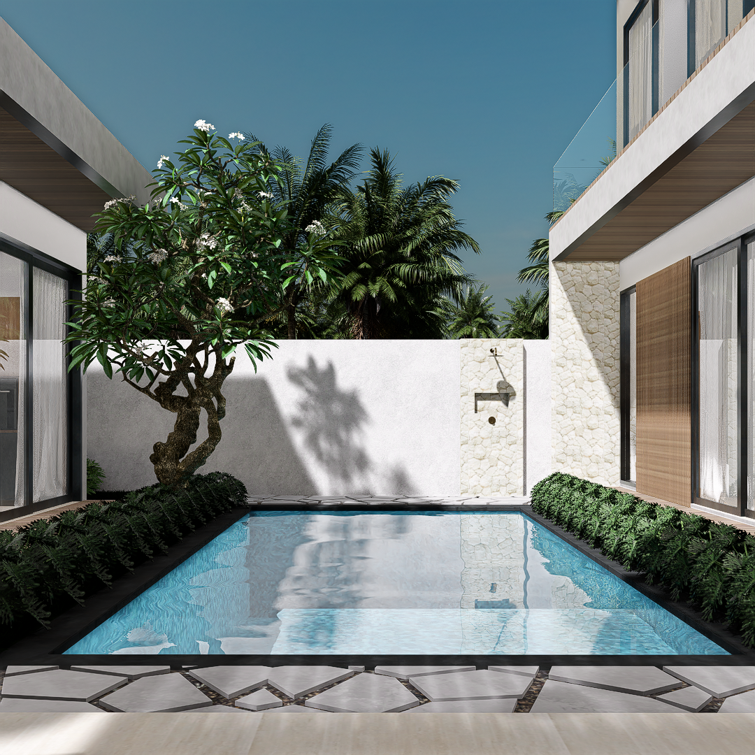 Each villa is enriched with warm material palettes like andesite stone, wood decking, and terracotta accents, creating a tactile and grounded atmosphere. With thoughtful circulation, private outdoor areas, and calm interior tones, Villa Kunti is designed to feel like a personal sanctuary while being just minutes away from Seminyak’s dining, shopping, and beach destinations.