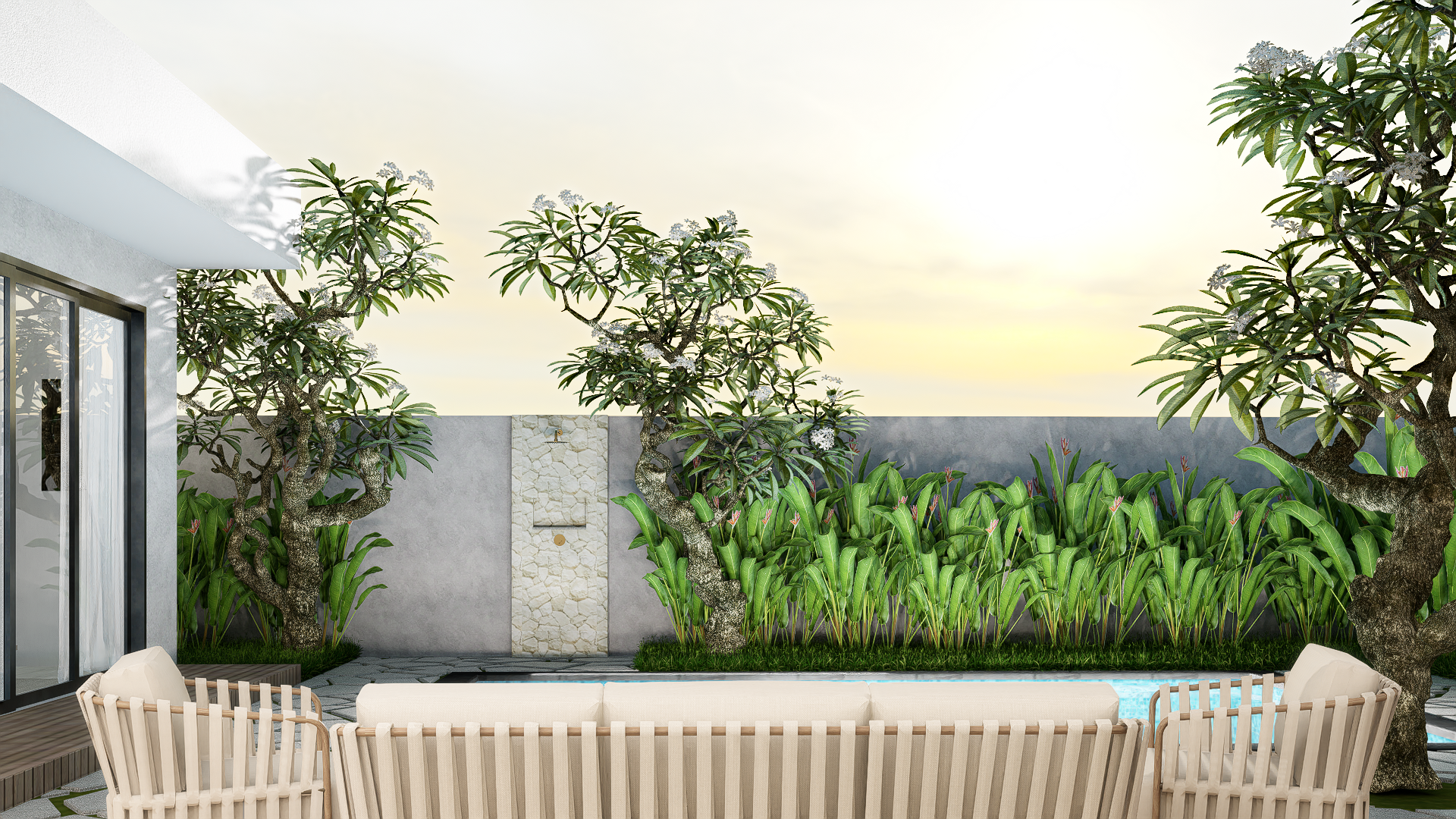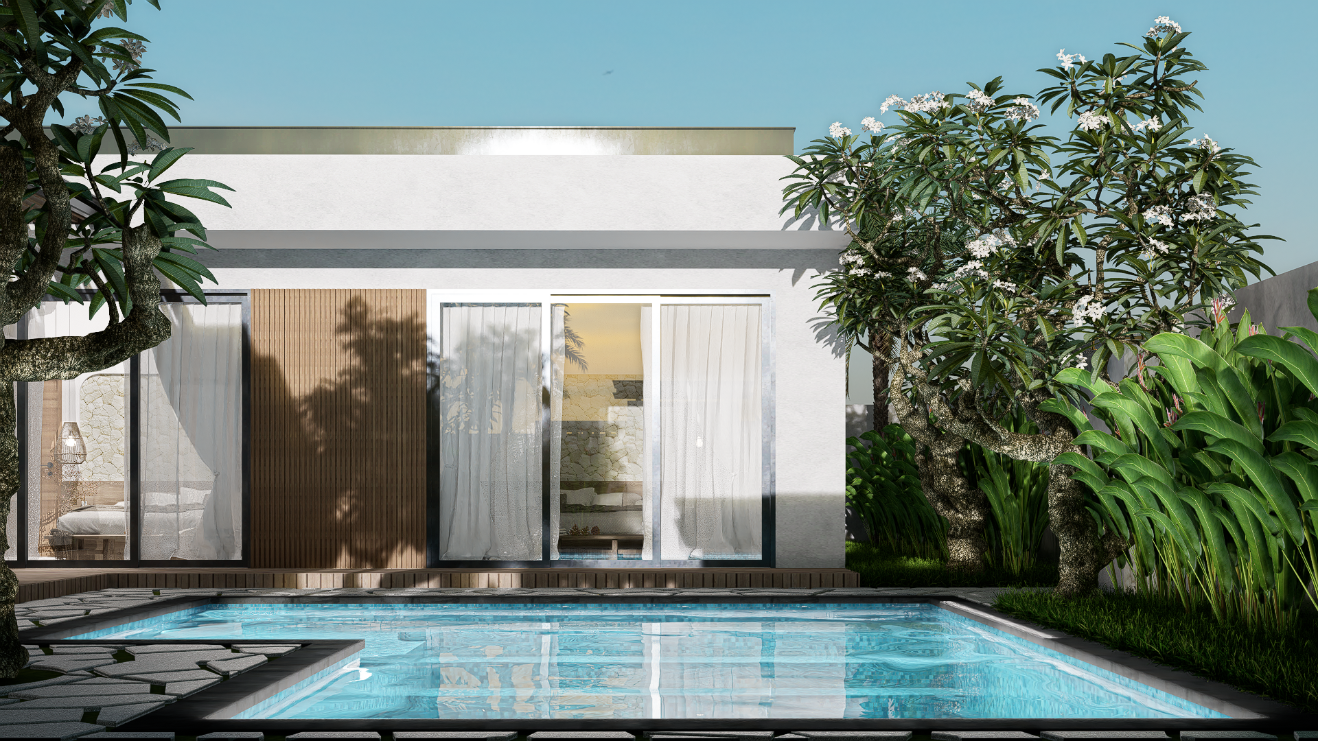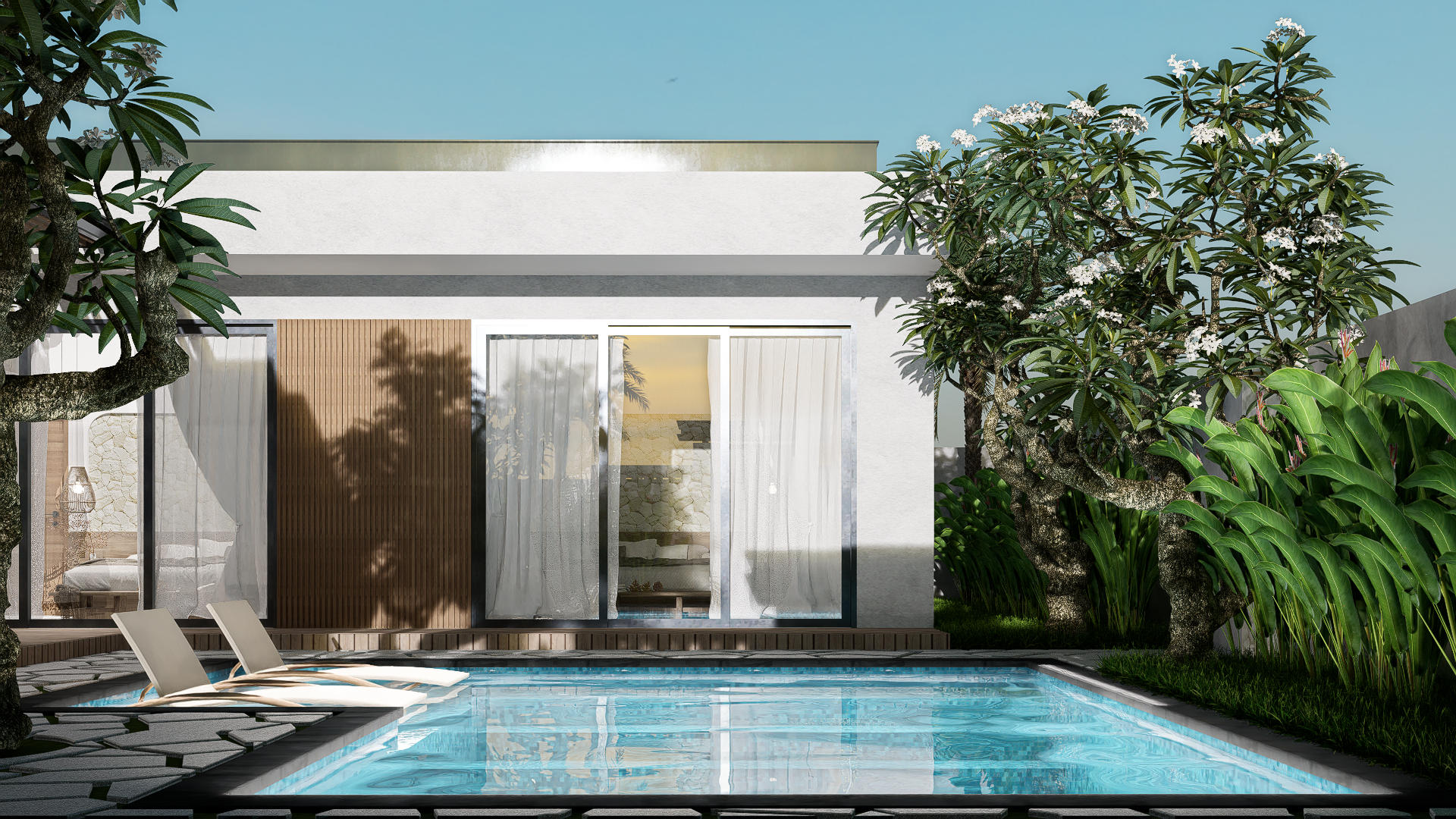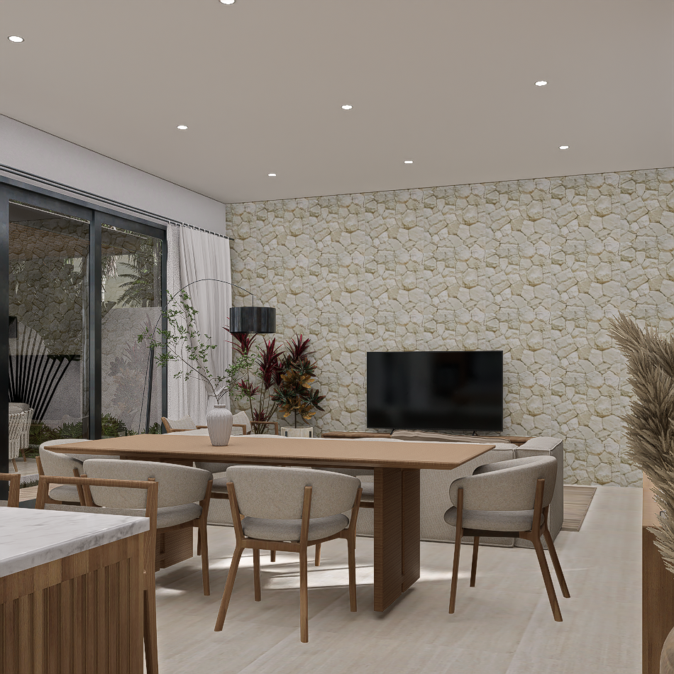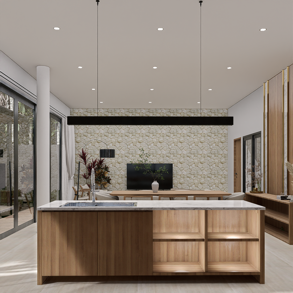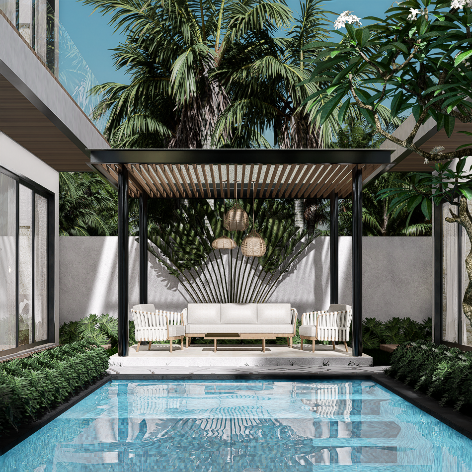 Each villa is enriched with warm material palettes like andesite stone, wood decking, and terracotta accents, creating a tactile and grounded atmosphere. With thoughtful circulation, private outdoor areas, and calm interior tones, Villa Kunti is designed to feel like a personal sanctuary while being just minutes away from Seminyak’s dining, shopping, and beach destinations.