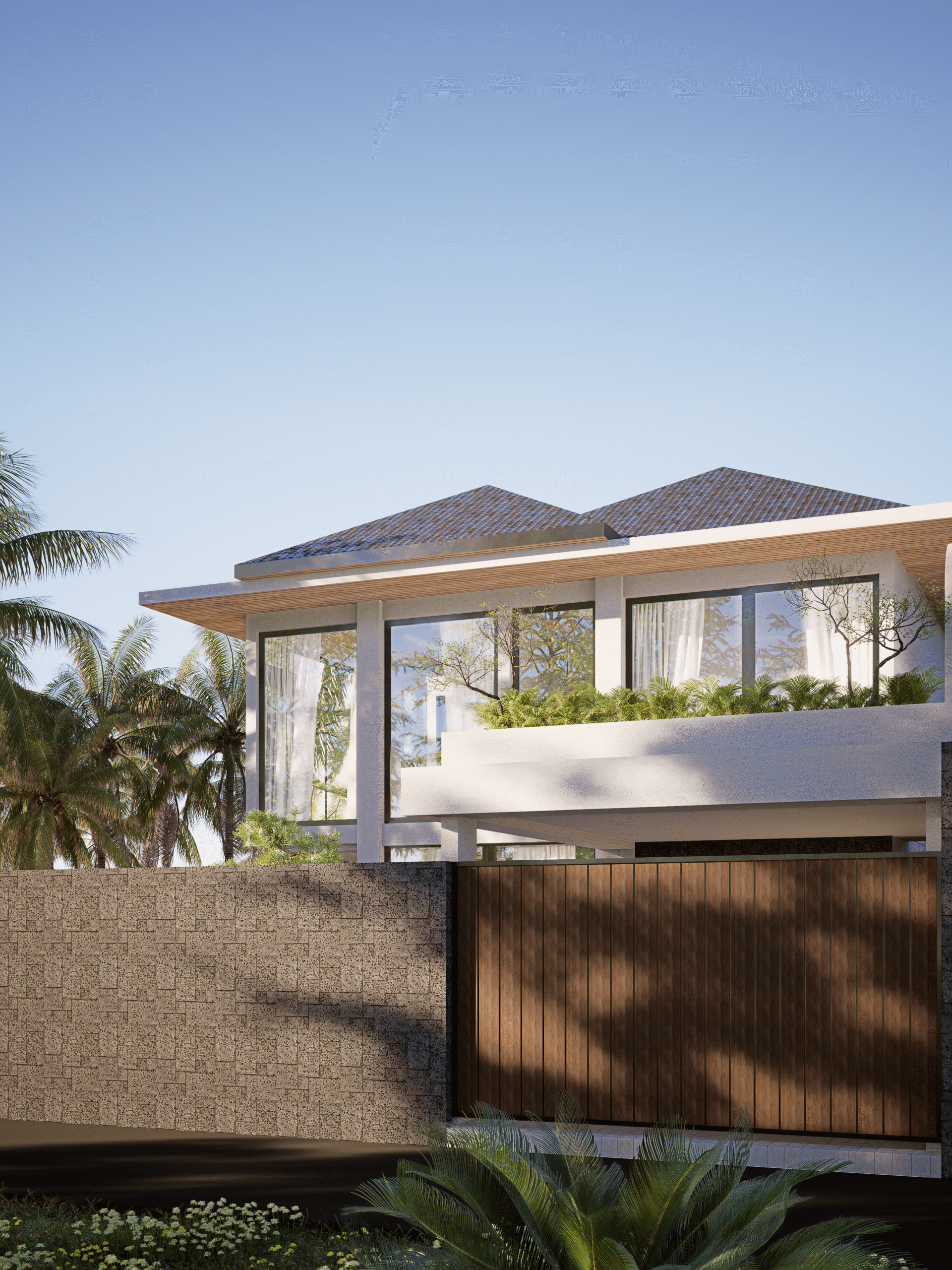 The exterior now shows a clean, structured look with natural textures, vertical patterns, and warm-toned details. The new layout brings better light, smoother circulation, and clearer zoning between private and shared areas. Each space inside was designed to feel open yet defined, with better airflow and a stronger sense of comfort.