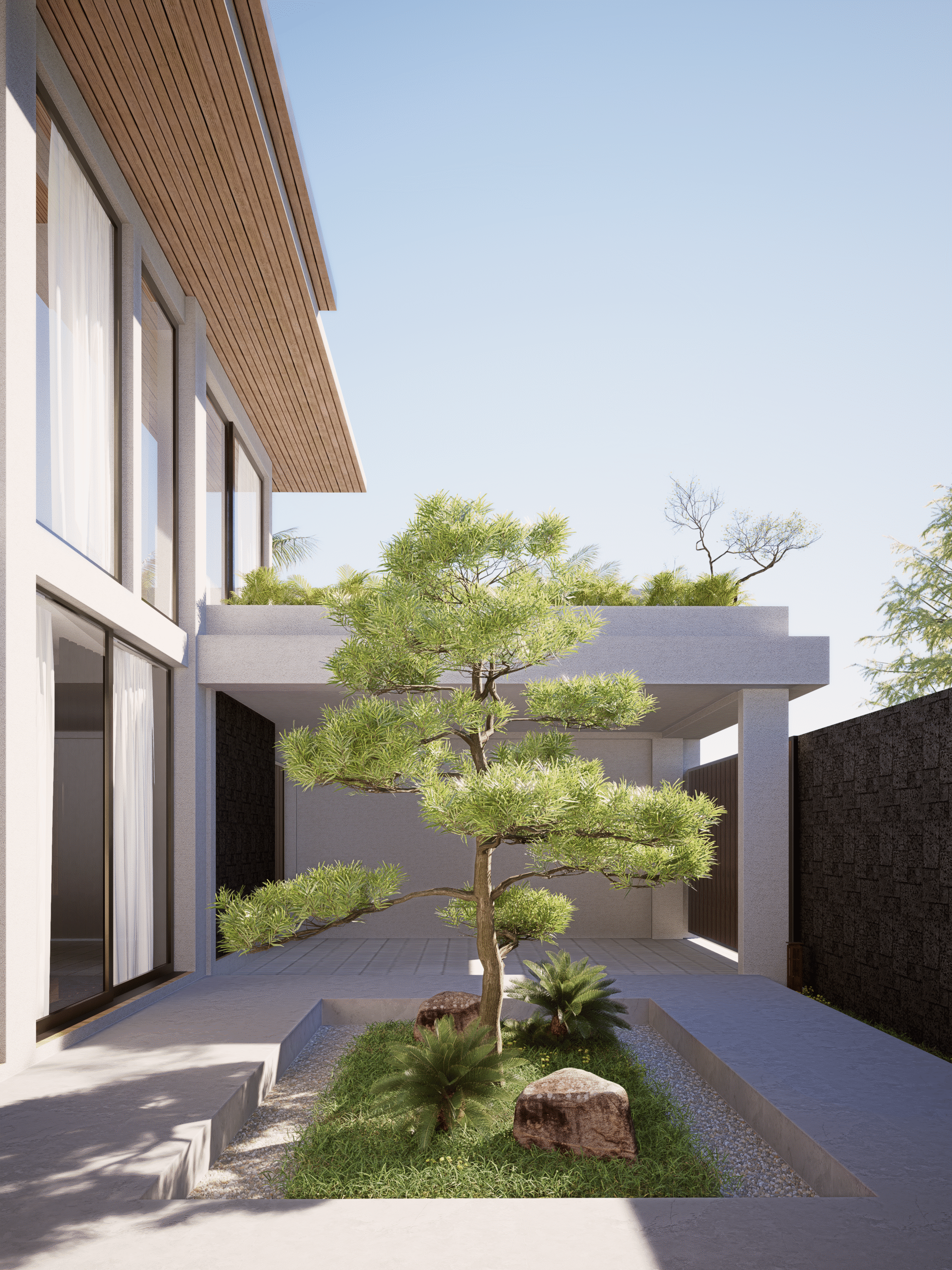 Outdoor areas were reshaped to serve as active parts of the home, not just supporting zones. Gardens, patios, and covered paths were added to support daily life and improve the quality of space throughout the site.